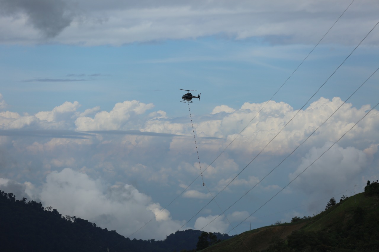 - El tendido de la línea se realizó con el apoyo de un helicóptero para minimizar impactos ambientales y riesgos en los trabajadores.
