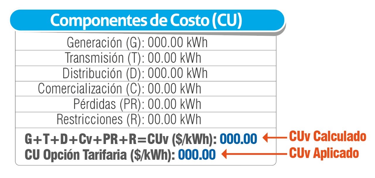 Desde 2020, los usuarios ven en su factura dos valores: la opción tarifaria y el costo unitario calculado, este último corresponde al costo real de cada uno de los componentes de la fórmula tarifara, es decir, el que se aplicaría si no existiera esta alternativa.
