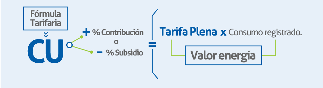 Una vez calculados los costos de la energía, utilizando la fórmula tarifaria CREG, se aplica el porcentaje del subsidio o la contribución para conocer la tarifa plena por cada estrato.