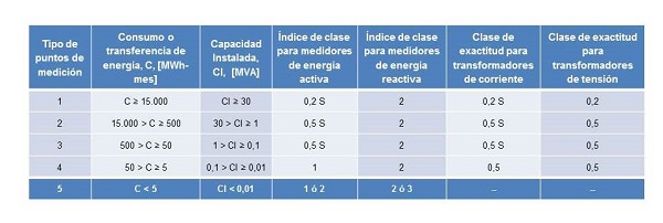 Clasificación de puntos de medición y requisitos de exactitud para medidores y transformadores de medida (Art. 1, Art. 9)