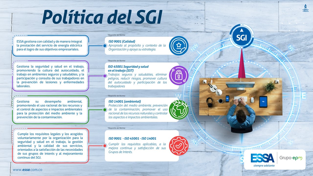 En ESSA, nos comprometemos a promover activamente el manejo responsable de los residuos sólidos, en coherencia con nuestra gestión ambiental parte de la política del Sistema de Gestión Integrado SGI, que nos indica que: debemos gestionar nuestro desempeño ambiental, promoviendo el uso racional de los recursos y el control de aspectos e impactos ambientales para la protección del medio ambiente y la prevención de la contaminación.