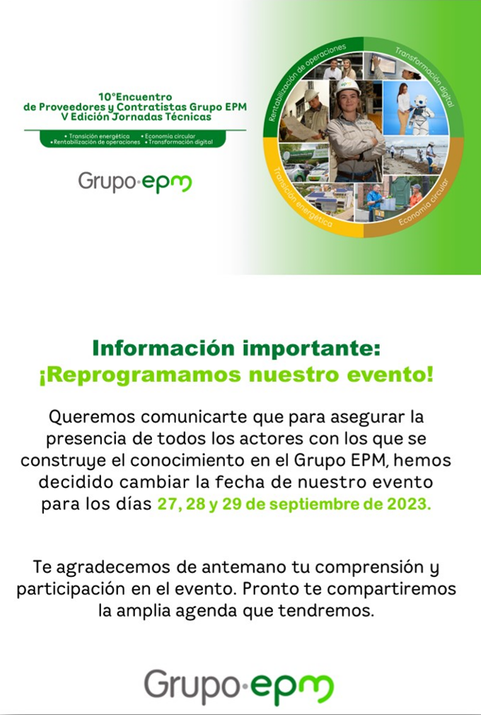¡Reprogramado el 10° Encuentro de Proveedores y Contratistas del Grupo EPM!